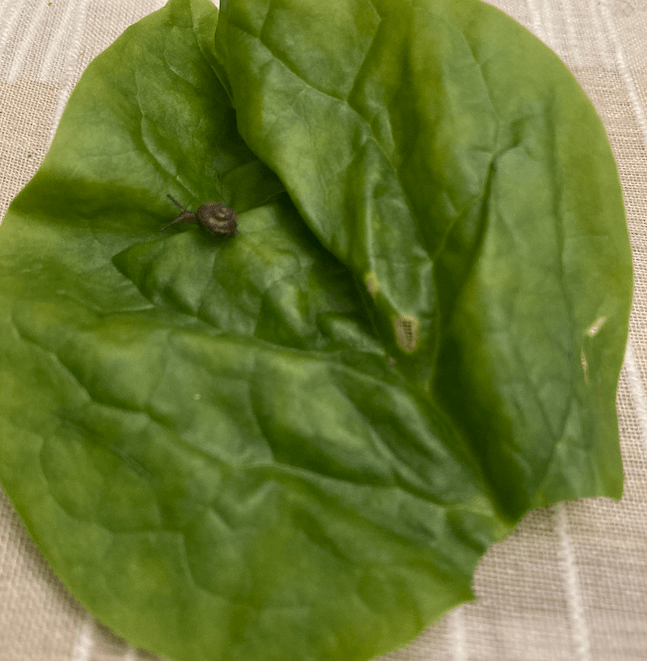 最有趣的是前天晚上Mo準備要料理青菜時,竟發現有一隻小蝸牛生命力十足的在菜葉中探索著!這包青菜是我們從超市冷藏架上帶回來的,要嘛就是這包菜很新鮮,收成沒多久就包裝上架,要嘛就是牠是真的很幸運地被菜葉保護的很好。這是我們這一陣子來在青菜中遇到的第二隻小蝸牛,牠們都被我一路護送到大樓一樓外的矮樹叢泥土上,附上一片青菜當食物床。