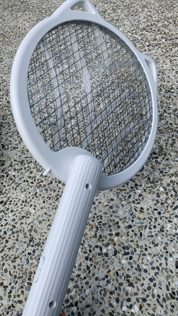這週一我神秘兮兮地跟Mo說,從明天開始我們的接地氣處境將大大不同,因為秘密武器即將抵達!看到折疊式電蚊拍時,他的臉上露出了笑容。我們迫不及待地為它充滿電,然後套上塑膠袋後就意氣風發的出門。