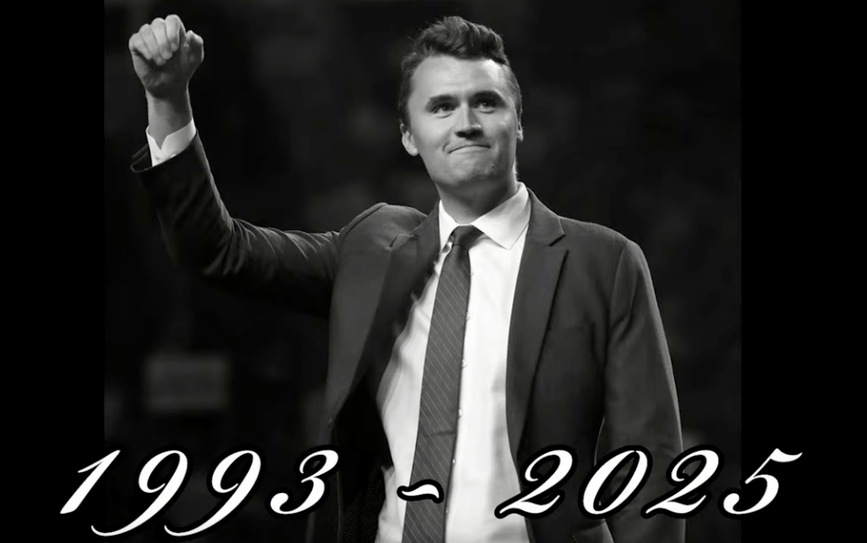 In memory of Charlie Kirk, who was assassinated on stage in front of people who loved and supported him, including his wife and two children.